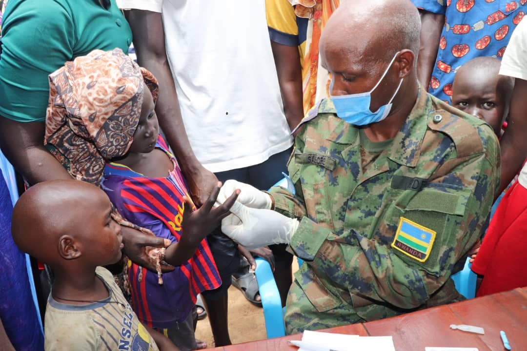 Byakozwe kuri uyu wa Gatandatu tariki 20 Kanama 2022, aho Ingabo z’u Rwanda zishinzwe kubungabunga amahoro zibarizwa muri Batayo ya mbere, ku bufatanye n’umuryango wita ku buzima (Family Health) ukorera muri Sudani y’Epfo ndetse n’abaturage batuye mu mujyi wa Juba.