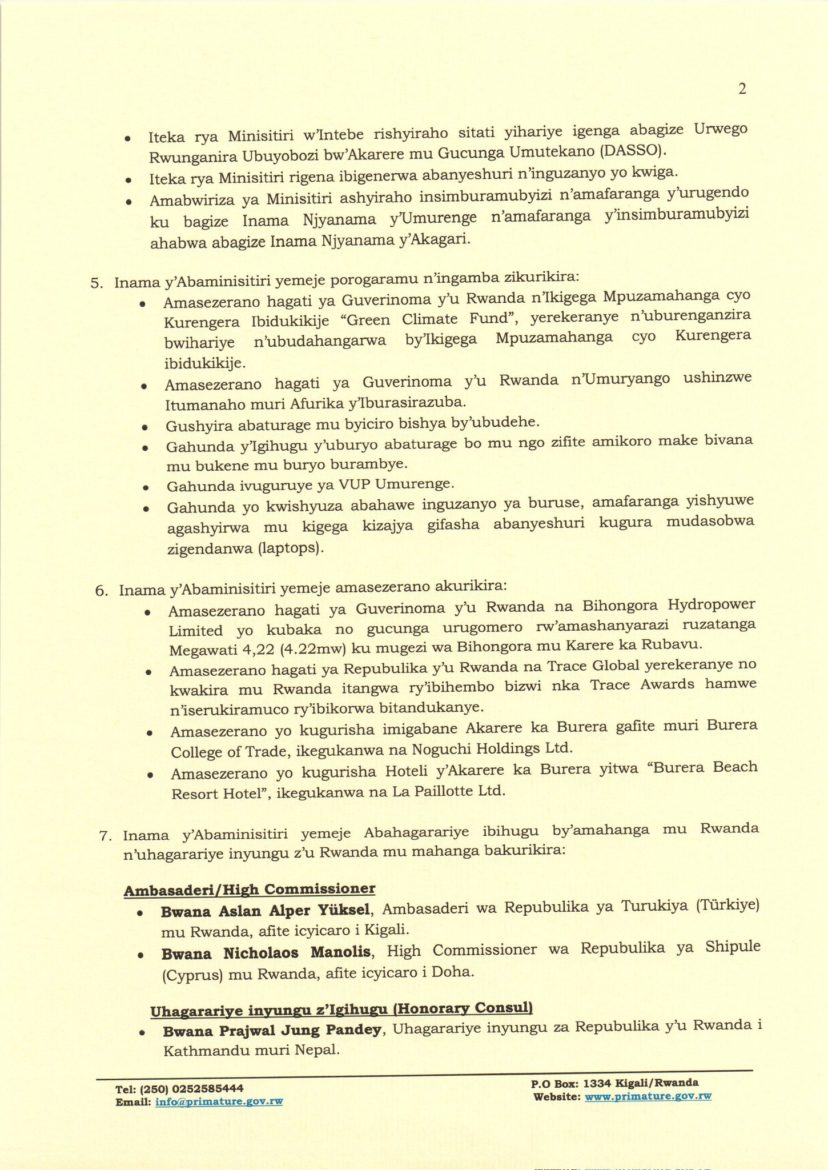 Reba ibyemezo byafatiwe muri iyi Nama y’Abaminisitiri