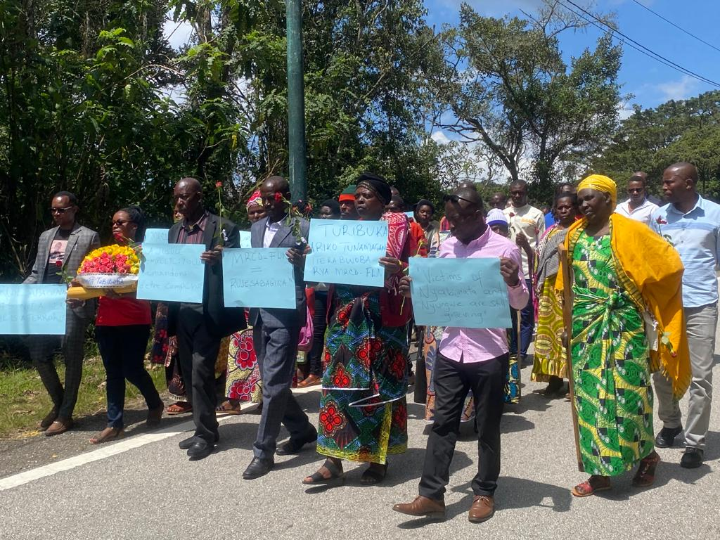 Abitabiriye uyu muhango bakoze urugendo rugufi hagati mu ishyamba mu rwego rwo kwibuka ababo baguye muri ibi bitero. Bari bitwaje ibyapa biriho ubutumwa bwamagana ibikorwa by’iterabwobwa bya MRCD-FLN yari iyobowe na Paul Rusesabagina.