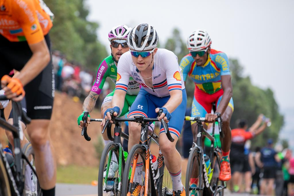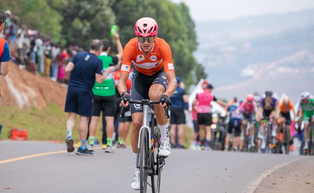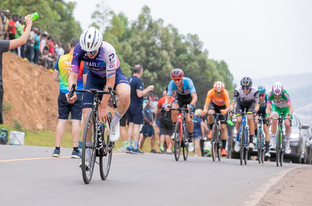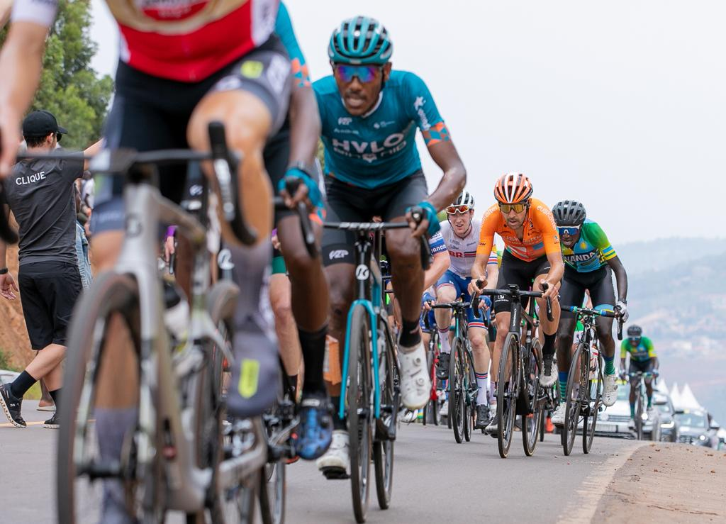 Chris Froome wa Israel Premier Tech ari gukinana n’umukinnyi umwe mu ikipe yeNsengimana Jean Bosco ni we munyarwanda wahageze mbereAbakinnyi benshi bagowe no kuzamuka Mont Kigali