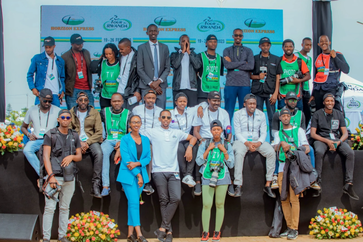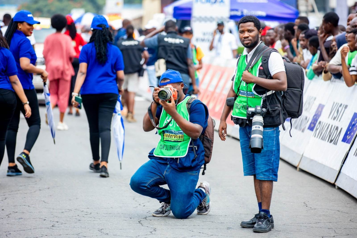 Uwafataga amashusho yatambutswaga kuri Televiziyo RwandaAcungira hafi ko abasiganwa bagera aho isiganwa risorezwa ngo afate amashushoBanyuzagamo bagafata amafoto mu gihe bategereje abasiganwa ko bagera hafi..MC David Bayingana umaze igihe kinini ayobora ibirori by’umukino w’amagareMugisha Dua ufatira amashusho ikinyamakuru IGIHEJado Dukuze wa FINE FMEric Muhire wafataga amashusho y’ibitangazamakuru mpuzamahanga birimo TV5Jean Claude Hitimana, Umunyamakuru akaba n’umuyobozi wa Radio 10Ishimwe Israel wa IgiheJean Claude Kanyamahanga “Kanyizo” na Mihigo Saddam wa BTNMC Buryohe, yari umwe mu bashyushyarugambaMoses Niyonzima wa Kigali Today (uhagaze) na Renzaho Christophe wa Rwanda Magazine (wicaye)Ngabo Roben wa Radio & TV OneRenzaho Christophe wa Rwanda MagazineMihigo Saddam na Mugenzi we ufata amashusho kuri BTNNyirabahire Safynat ufata amashusho ya Flash TVYvonne Iradukunda Karugenge wa B&BClaire Mutoni wa Power FMEphrem Kayiranga wa Radio FlashFabrice wa RBA ufata amashusho yo mu kirere hifashishijwe DroneSammy Imanishimwe wa Kigali Today na KT RadioJean Claude Hitimana na KanyizoIshimwe Olivier uzwi nka Demba Ba ukorera InyarwandaJimmy Adnan wafataga amashusho ya TV 10Niyonzima Moise, ufata amafoto ya Kigali Today ari nawe wafashe aya mafoto yosePaul Mugabe wa Radio & TV 10, unakoresha imbuga nkoranyambaga zayoRabbin Imani Isaac wa isango StarRigoga Ruth wa RBAKayishema Tity Thierry wa RBA, ari nawe ushinzwe itangazamakuru muri FERWACYJean Claude Hitimana (Radio 10), Jean Claude Kwizigira (Radio Rwanda), Ephrem Kayiranga (Flash FM) na Sammy Imanishimwe (Kigali Today)Nyuma yo kuba bakorera ibitangazamakuru bitandukanye, intego yari imwe yo kugeza amakuru ya Tour du Rwanda ku bantu boseNyuma yo gusoza akazi k’iminsi umunani, ni uku byari bimeze