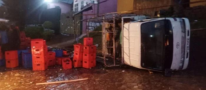 Ku mugoroba tariki ya 13 Werurwe 2023, mu Murenge wa Kimisagara mu Karere ka Nyarugenge, imodoka ifite purake RAE 913 A yari ipakiye inzoga izivanye mu Karere ka Kicukiro, yageze hafi ya Maison de Jeunes irabirinduka inzoga yari ipakiye zirameneka, abaturage bihutira kureba izarokotse bimara inyota.