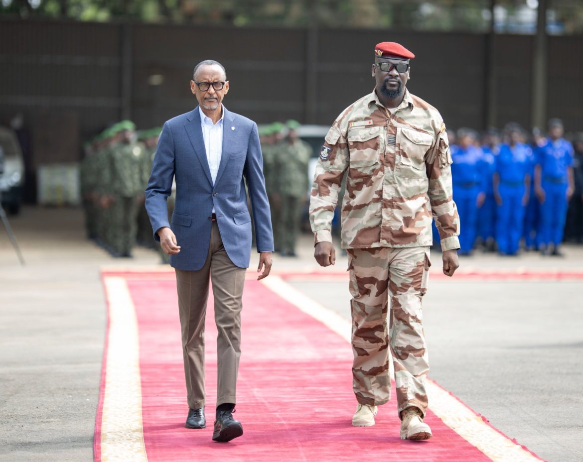 Umukuru w’Igihugu akigera muri icyo gihugu, yakiriwe na Perezida w’Inzibacyuho Colonel Mamadi Doumbouya, ari na we wamutumiye muri uru ruzinduko rugamije kwimakaza umubano.