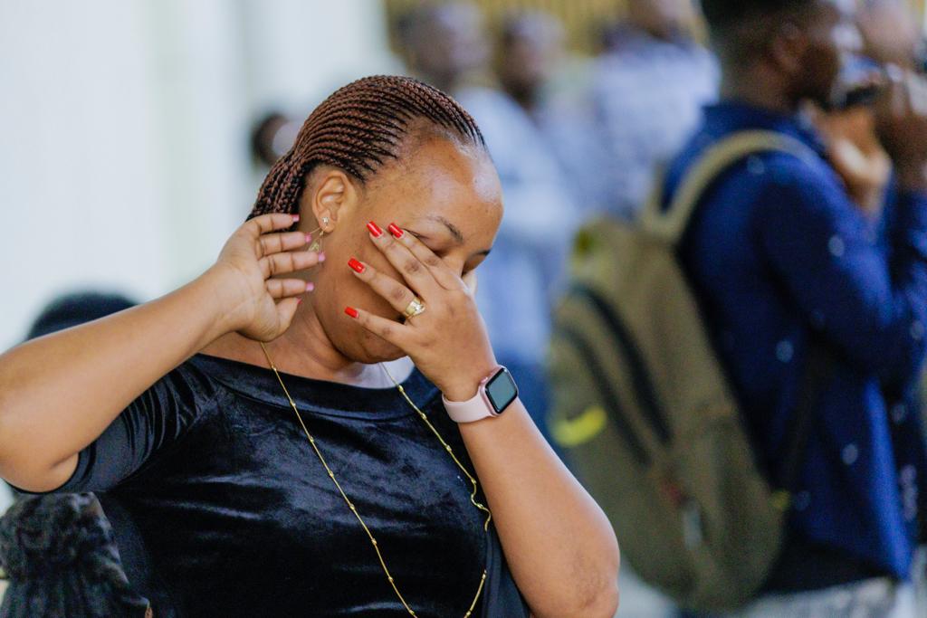 Mu marira menshi n’amarangamutima, Uwanyana yananiwe kwihangana, ajya guhobera ifoto y’uwari umugabo we avuga amagambo yuje urukundo, ko azamukumbura.