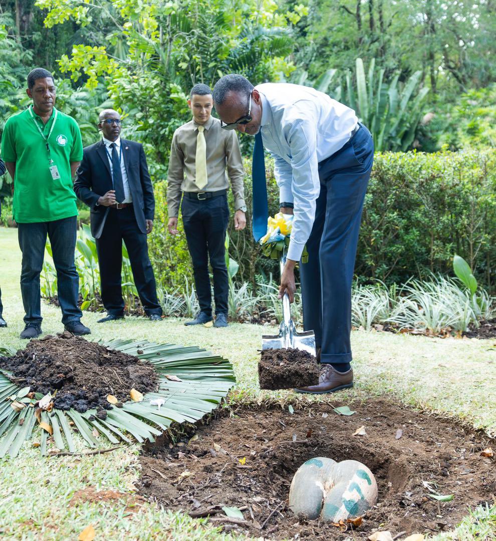 Mbere y’ibi birori kandi, Umukuru w’Igihugu yasuye ubusitani buri mu Murwa Mukuru Victoria, anatera igiti cyo mu bwoko bwa Coco-de-Mer.