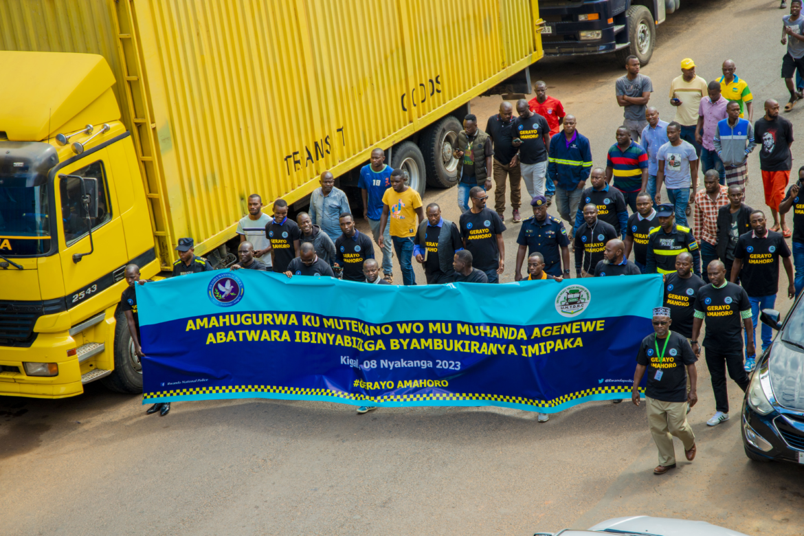 Abashoferi batwara amakamyo, bagaragarijwe uruhare rwabo mu kubungabunga umutekano wo mu muhanda, ni muri gahunda ikomeje y’Ubukangurambaga bw’umutekano wo mu muhanda ‘Gerayo Amahoro’.