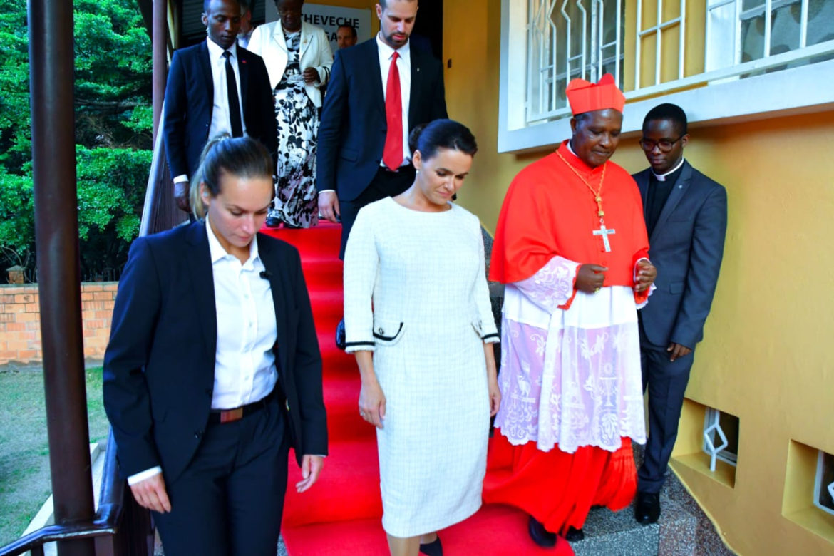 Antoine Cardinal Kambanda ari kumwe n’Abasaserdoti batandukanye, bakiriye mu rugo rwe (Evêché), Perezida Katalin Novák, bagirana ibiganiro byagarutse ku gaciro k’umuryango n’indangagaciro za gikristu mu kubaka Isi nziza.