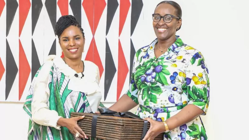 Ku ruhande rw’iyi nama, Madamu Ndayishimiye yakiriwe na mugenzi we Madamu wa Perezida w’u Rwanda, Jeannette Kagame ndetse bahana impano.